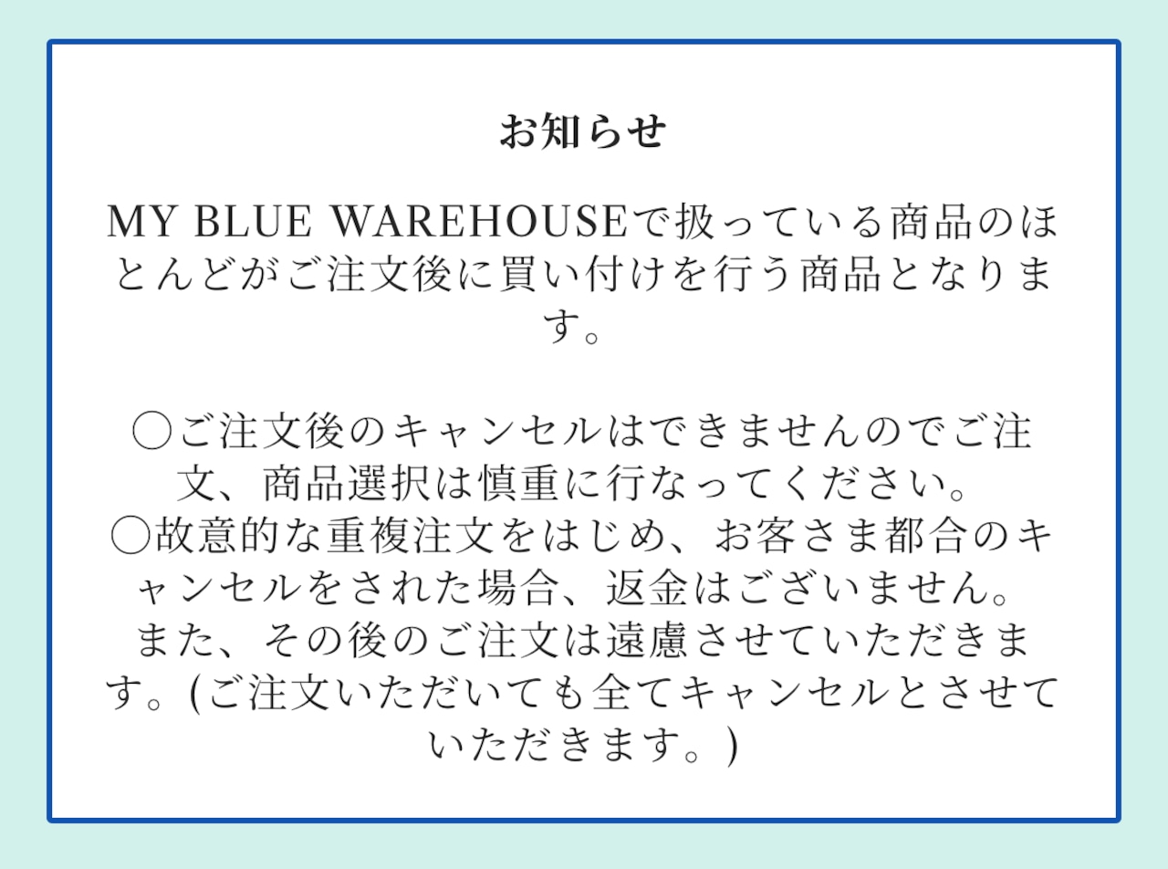 全ての商品は、在庫があるものではなく、購入代行商品となります。